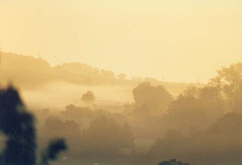 Der Blick geht über das Aseltal hinweg in Richtung Nordost.
