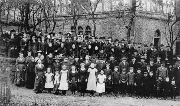 "Wir haben hier keine bleibende Stadt, sondern die zukünftige suchen wir". Dieses Foto zeigt die versammelte Dorfgemeinschaft nach dem letzten Gottesdienst vor der Umsiedlung.